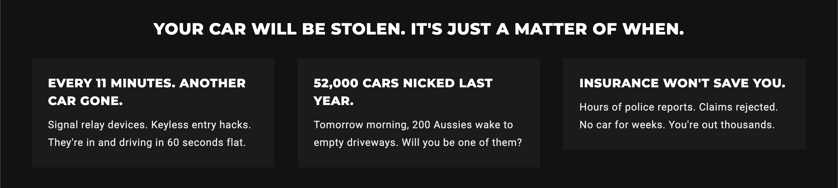 Steering wheel to seatbelt buckle in under 15 seconds. Thieves see it, they leave. Thieves miss it, they're stuck. No steering, no driving, no theft. While your neighbour’s filing insurance claims, you’re sleeping soundly.